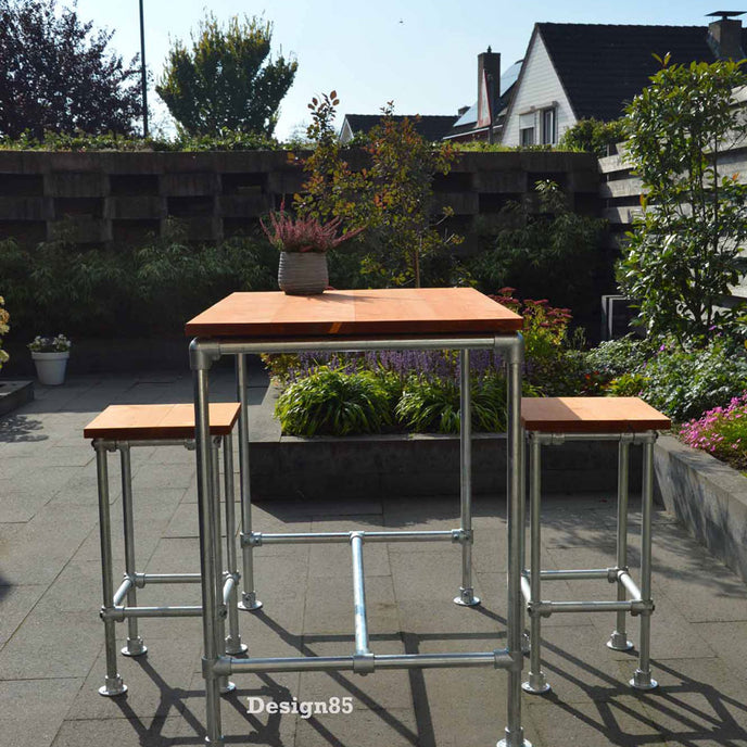 Een ideale combinatie is de bartafel tuin, type Zonnebloem van DESIGN85 met natuurlijk een steigerbuis barkruk, dit geeft een perfecte set en zal super mooi staan op ieder terras. De barkruk met verzinkte steigerbuizen wordt als een compleet meubel geleverd, hierdoor kun je de barkruk direct op de gewenste plaats plaatsen.