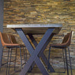 De afmetingen van de hoge bartafel San Francisco zijn 140 x 100 x 109 cm (lengte x breedte x hoogte). De poten van staal hebben een X vorm en hebben een koker van 10 x 10 cm en hebben de kleur zwart. Het blad van vurenhout is massief en heeft een dikte van 4 centimeter. Wil je een andere afmeting, geen probleem! Neem dan even contact met ons op. Maatwerk is namelijk mogelijk voor je hoge bartafel.