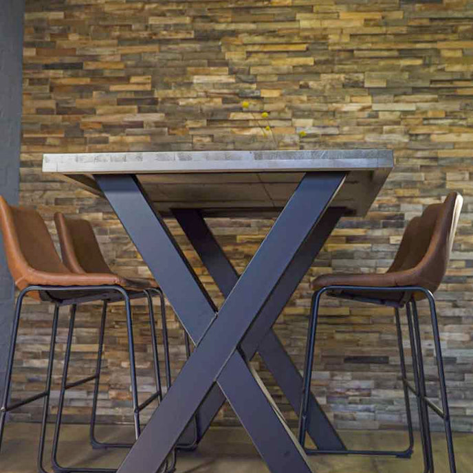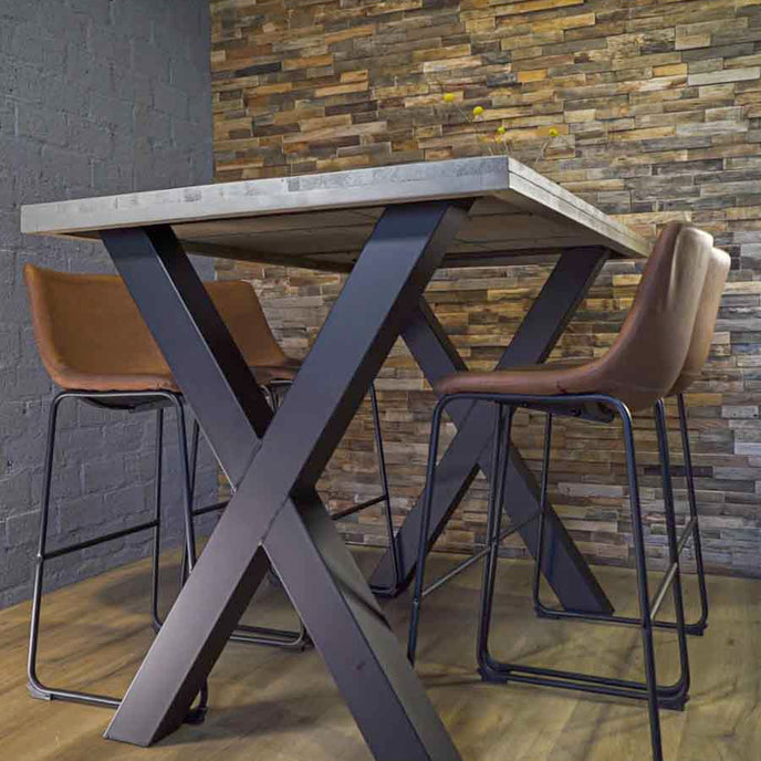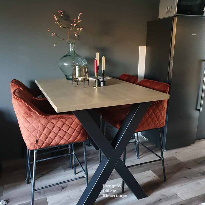 Op zoek naar een X poot hoge bartafel voor je woonkamer? Kies dan voor deze robuuste en stoere bartafel. Het tafelblad is leverbaar in diverse kleuren en afmetingen. De totale hoogte bedraagt 109 cm. De bartafel kan op maat worden gemaakt, vraag vandaag je maatwerk bartafel nog aan!
