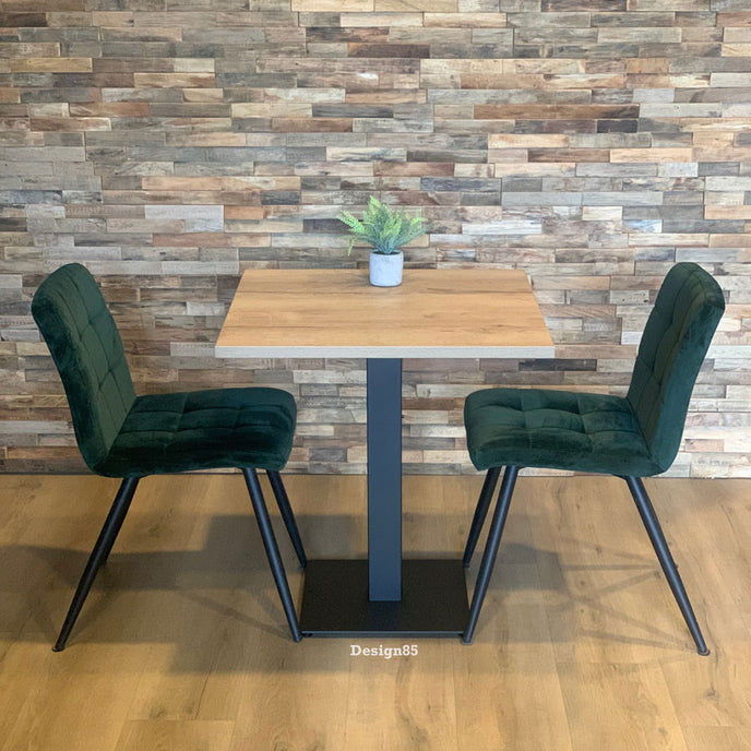 Deze stevige industriële eiken eettafel Horeca is handig en functioneel en past hierdoor in iedere horeca gelegenheid. Het tafelblad heeft een afmeting van 70 x 70 cm, ideaal voor de horeca. Het tafelblad is leverbaar in diverse kleuren en kan op maat worden gemaakt, vraag vandaag je maatwerk eettafel nog aan!