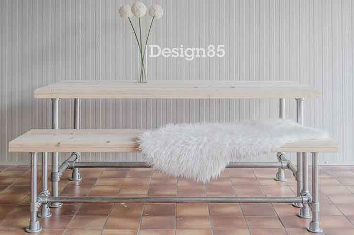 Industriële bank Basic combineren met steigerbuis tafel