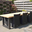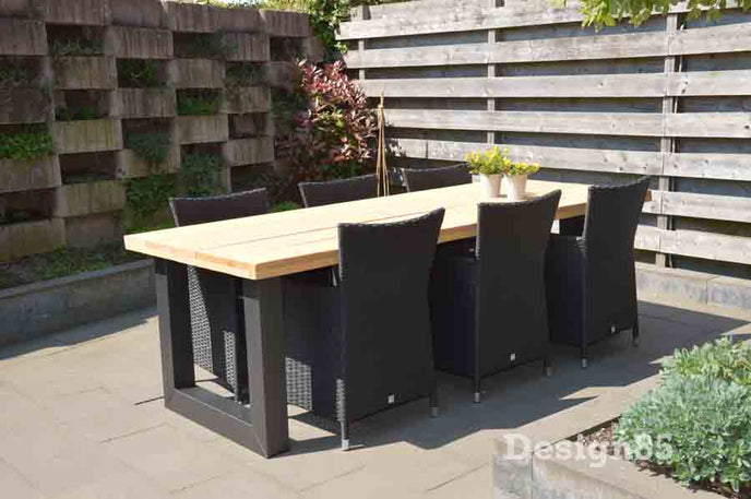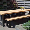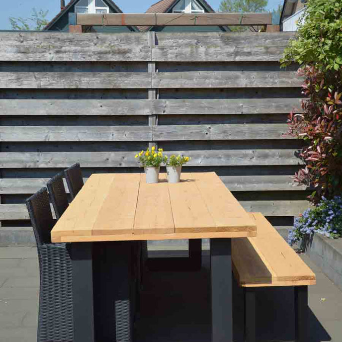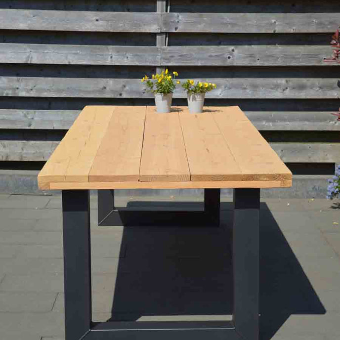 Welke afmetingen heeft de industriële Douglas hout eettafel Buiten?