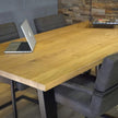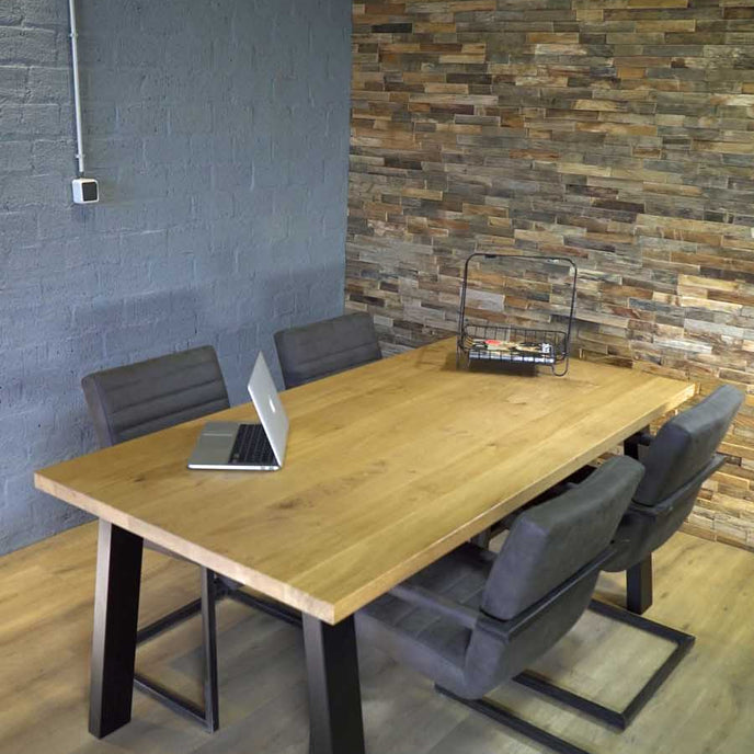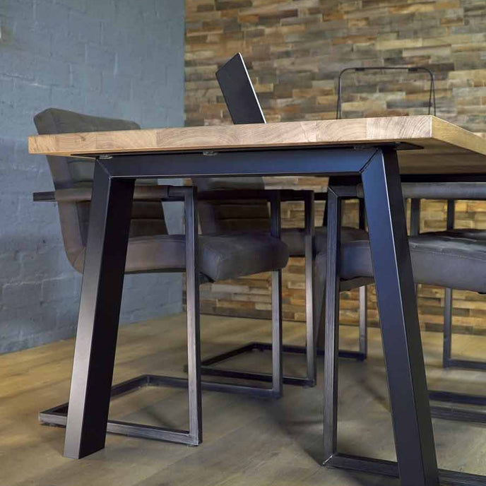 Massief eiken tafelblad bij industriële eettafel Continentaal
