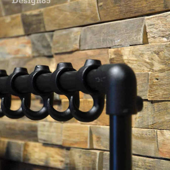 De industriële kapstok Lief bevat standaard zes haken. De opening van de industriële haken zitten aan de voorkant. Waardoor het eenvoudiger is om de jassen op te hangen. Het is mogelijk om meerdere zwarte haken voor de industriële kapstok te bestellen.