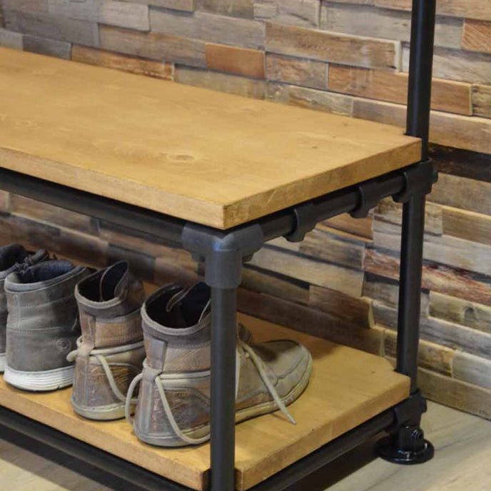 Wil je een industriële kapstok die je niet in de muur hoeft te boren? Onze unieke kapstok Lief bestaat uit zwarte steigerbuizen en steigerhouten legplank. De industriële kapstok is in diverse afmetingen te bestellen en de totale hoogte bedraagt 175 cm. De kapstok kan ook op maat gemaakt worden.