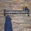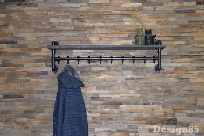 Aan de industriële kapstok Robuust worden standaard 6 stuks haken geleverd om jassen, sjaals, mutsen en andere accessoires aan op te hangen. Geschikt voor elke hal, kleedkamer, slaapkamer of welke andere ruimte in je woning. De industriële kapstok bevat een legplank die boven op de kapstok wordt geplaatst. Hierdoor kun je nog accessoires op de kapstok plaatsen, bijvoorbeeld sjaals en mutsen. Om de kapstok iets extra's te geven, is het mogelijk om de legplank te voorzien van een wax.