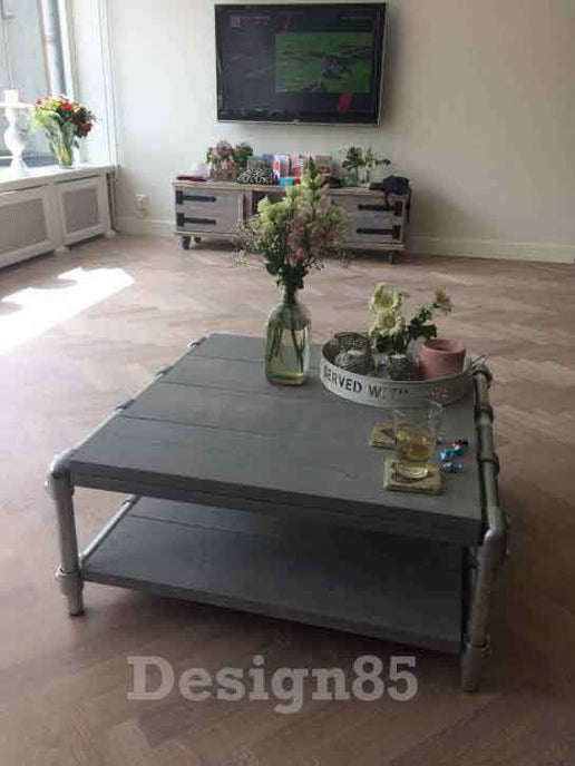 DESIGN85 biedt een stoere en robuuste salontafel aan van steigerhout en steigerbuis. De salontafel steigerbuis Meer is een aanwinst voor iedere woonkamer. De salontafel is in diverse kleuren te bestellen en de totale hoogte bedraagt 35 cm. De salontafel kan op maat worden gemaakt, vraag vandaag je maatwerk salontafel nog aan!