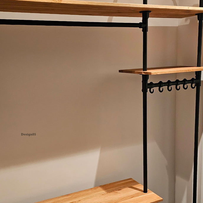 Diverse kapstokhaken bij de steigerbuis kapstok