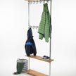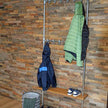 Aan de steigerbuis kapstok Kordaat zitten standaard zes haken. De opening van de industriële haken zitten aan de voorkant waardoor het eenvoudiger is om de jassen op te hangen. Het is mogelijk om meerdere haken te bestellen. Daarnaast is het mogelijk om een extra kledingstang voor de kinderen te bestellen, het is natuurlijk mogelijk om extra haken te bestellen. Deze kledingstang kun je zelf op hoogte monteren.