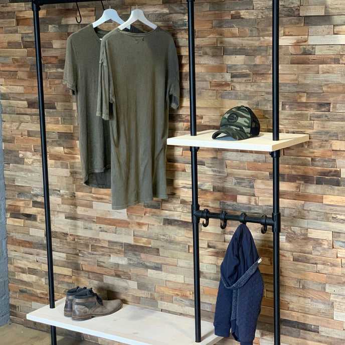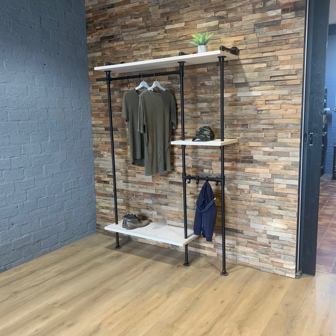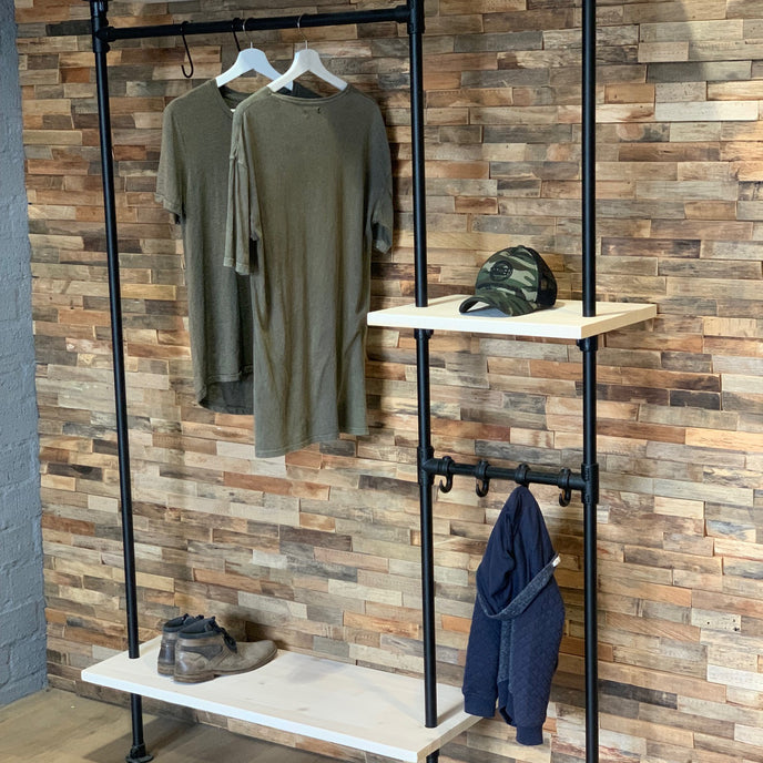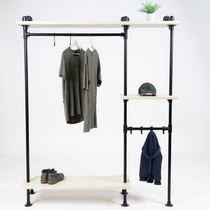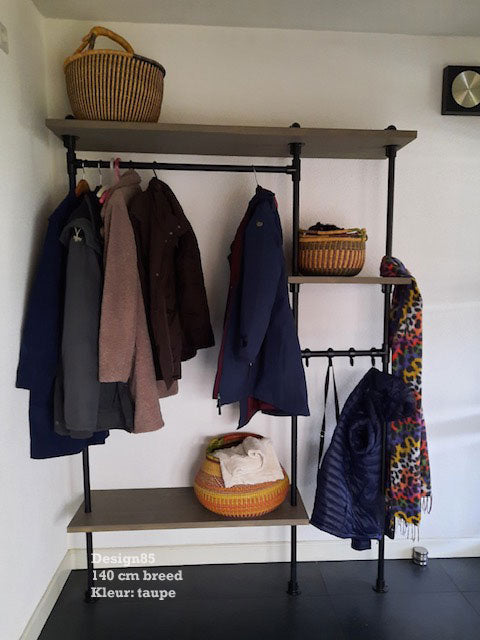 Onze unieke steigerbuis kapstok Mooi mag gezien worden in je huis. De kapstok bestaat uit zwarte steigerbuizen en legplanken die leverbaar zijn in diverse kleuren. De kapstok is in diverse afmetingen te bestellen en de totale hoogte bedraagt 205 cm. Ben je op zoek naar een ander formaat of indeling? Vraag snel je maatwerk kapstok aan!