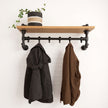 Deze stoere steigerbuis kapstok voor aan de wand geeft een industriële look aan iedere garderobe. De steigerbuis kapstok bestaat in zijn geheel uit steigerbuizen gecombineerd met steigerhout. De steigerbuis kapstok heeft een industrieel karakter.