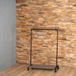 Praktisch en sterk steigerbuis kledingrek Huidig met zwarte buizen en schappen. Met diverse lepgplanken biedt het kledingrek volop ruimte voor kleding en schoenen. Het steigerbuis kledingrek is in diverse afmetingen te bestellen en de totale hoogte bedraagt 150 cm. Dit kledingrek kan op maat worden gemaakt, vraag vandaag je maatwerk kledingrek nog aan!