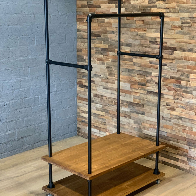 Welke afmetingen heeft het steigerbuis kledingrek Winkel?